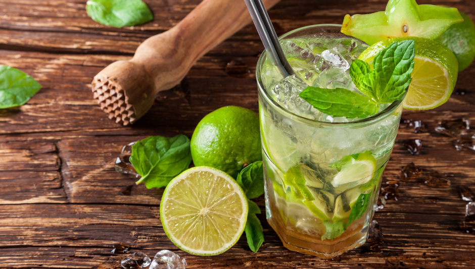 Un cocktail emblématique aussi simple que bon : rhum blanc, citron vert, feuilles de menthe fraîche, citron vert, sirop de canne CANADOU et eau gazeuse.